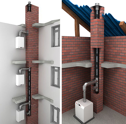 Использование модульных дымоходов из нержавеющей стали для отведения продуктов сгорания бытовых газовых котлов может быть затруднено формой дымовой шахты (заужения шахты или наличие непрямых или труднопроходимых участков). В таких случаях выбор монтажа дымохода FuranFlex®(ФуранФлекс) оказывается единственно возможным вариантом.