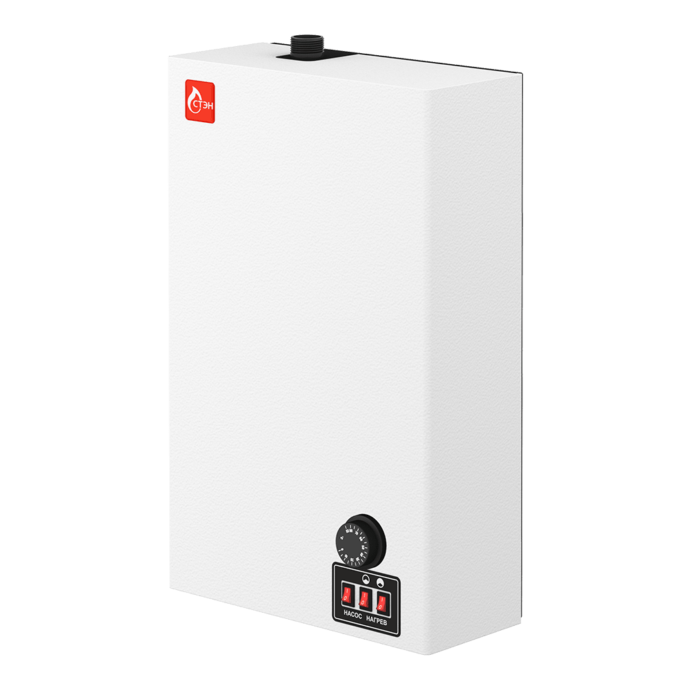 Электрокотлы СТЭН ЭВПМ предназначены для отопления помещений площадью до 180 м2. Котлы оснащены механическим терморегулятором. В изделиях установлены ТЭНБ с ТЭНами из углеродистой стали, применен силовой блок на «тихих» силовых реле и двухступенчатая независимая регулировка мощности; предусмотрена возможность подключения насоса.