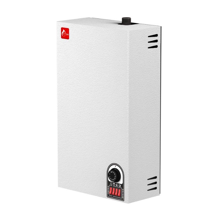 Настенные котлы для отопления помещений до 450 м2. Котлы оснащены механическим терморегулятором и аварийным термостатом. Установлены ТЭНБ с ТЭНами из нержавеющей стали. Установлены ТЭНы из нержавеющей стали, применён силовой блок на «тихих» силовых реле и трёхступенчатая независимая регулировка мощности. Предусмотрена возможость подключения и управления насосом через схему прибора синхронно с нагревом или постоянно. Возможно подключение внешних устройств управления (комнатный термостат, GSM-контроллер). Для управления котлами по температуре воздуха в помещении рекомендуется использовать терморегуляторы РТВВ и РТВН. Рабочее давление 4,5 атм. Баки котлов теплоизолированы.