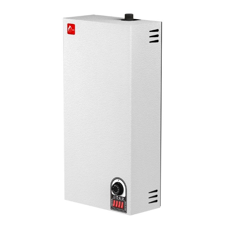 Настенные котлы для отопления помещений до 450 м2. Котлы оснащены механическим терморегулятором и аварийным термостатом. Установлены ТЭНБ с ТЭНами из нержавеющей стали. Установлены ТЭНы из нержавеющей стали, применён силовой блок на «тихих» силовых реле и трёхступенчатая независимая регулировка мощности. Предусмотрена возможость подключения и управления насосом через схему прибора синхронно с нагревом или постоянно. Возможно подключение внешних устройств управления (комнатный термостат, GSM-контроллер). Для управления котлами по температуре воздуха в помещении рекомендуется использовать терморегуляторы РТВВ и РТВН. Рабочее давление 4,5 атм. Баки котлов теплоизолированы.