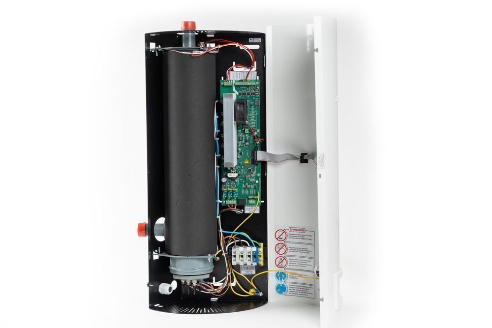 Мощность 6 кВт, 220 В, группа ТЭН 3х2 кВт из нержавеющей стали. Микропроцессорное управление, симисторные ключи, расширенная цифровая, светодиодная и звуковая индикация, модуляция мощности, плавный пуск с предварительным подогревом, ротация ТЭН, реле давления, интеллектуальный выход контроля протока, возможность каскадного подключения, дежурная подсветка. Вход для внешнего термостата и погодозависимой автоматики. Размер ВхШхГ — 710х323х172. Присоединительный размер 1".