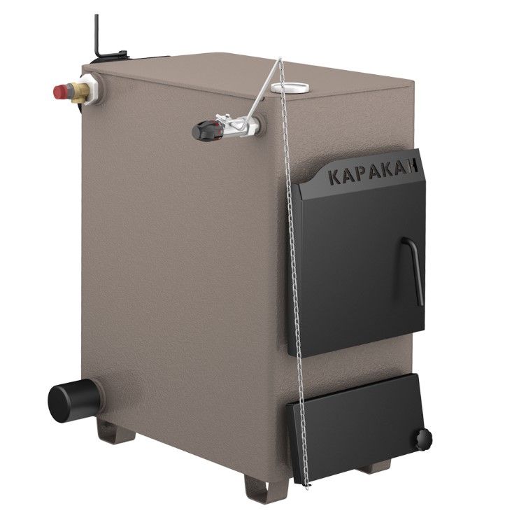 Котлы отопительные твердотопливные с водяным контуром КАРАКАН предназначены для обогрева жилых и производственных помещений площадью до 300 м2. Встраиваются в любую систему отопления с давлением до 3 атм, с любыми расширительными баками. Присоединительные патрубки расположены слева и справа. Теплоноситель – вода либо антифриз для систем отопления.