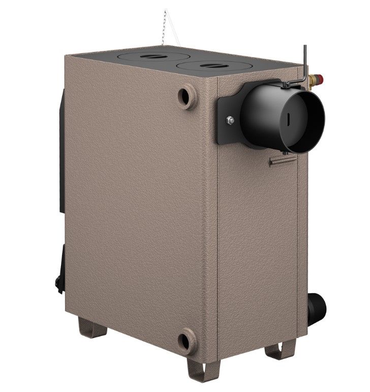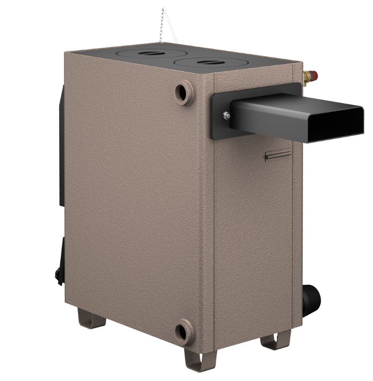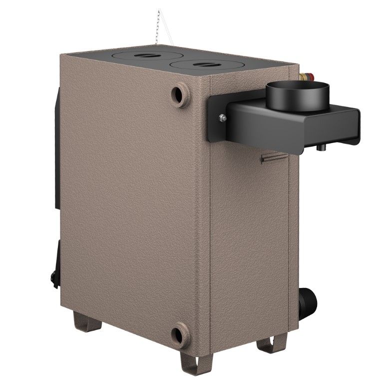 Котлы выпускаются в модификациях: с плитой, с выходом дымохода назад либо вверх, а также одно- и двухконтурные. Второй водяной контур изготовлен из нержавеющей стали и предназначен для оборудования системы бытового горячего водоснабжения (ГВС).