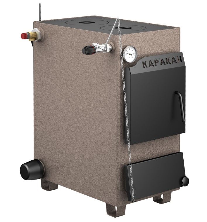 Котлы отопительные твердотопливные с водяным контуром КАРАКАН предназначены для обогрева жилых и производственных помещений площадью до 300 м2. Встраиваются в любую систему отопления с давлением до 3 атм, с любыми расширительными баками. Присоединительные патрубки расположены слева и справа. Теплоноситель – вода либо антифриз для систем отопления.