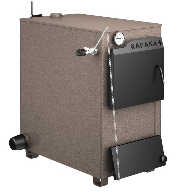 Котлы отопительные твердотопливные с водяным контуром КАРАКАН предназначены для обогрева жилых и производственных помещений площадью до 300 м2. Встраиваются в любую систему отопления с давлением до 3 атм, с любыми расширительными баками. Присоединительные патрубки расположены слева и справа. Теплоноситель – вода либо антифриз для систем отопления.