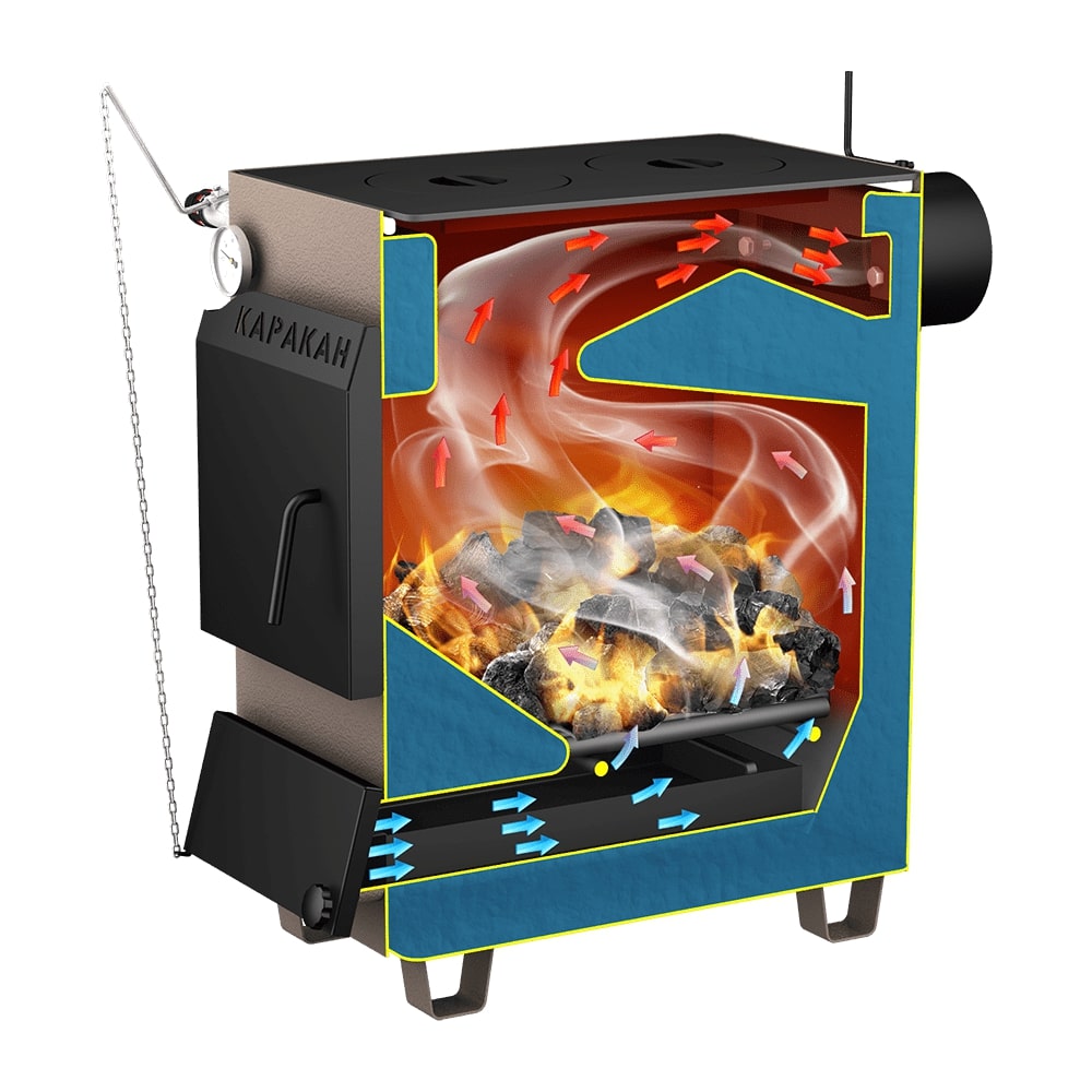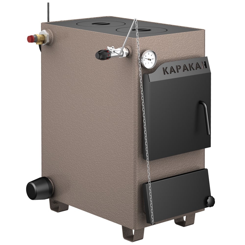Котлы отопительные твердотопливные с водяным контуром КАРАКАН предназначены для обогрева жилых и производственных помещений площадью до 300 м². Встраиваются в любую систему отопления с давлением до 3 атм, с любыми расширительными баками.