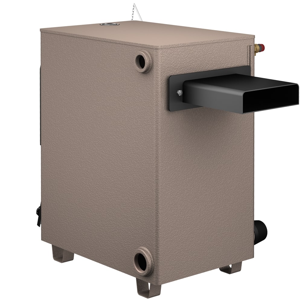 Установка в котле блока ТЭНов мощностью до 9 кВт позволяет отапливать объекты только за счет электроэнергии в течение большей части отопительного сезона. Возможна установка газовой горелки мощностью 24 кВт.