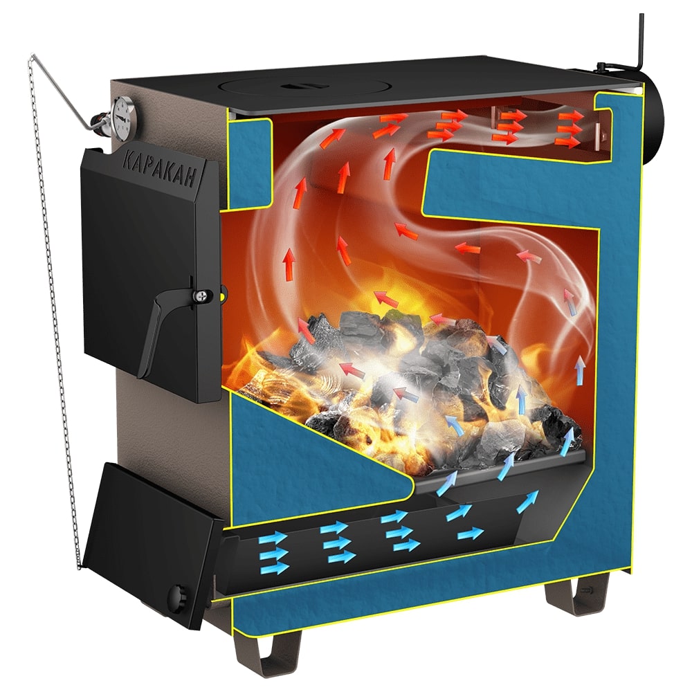 Котлы отопительные твердотопливные с водяным контуром КАРАКАН предназначены для обогрева жилых и производственных помещений площадью до 300 м². Встраиваются в любую систему отопления с давлением до 3 атм, с любыми расширительными баками.
