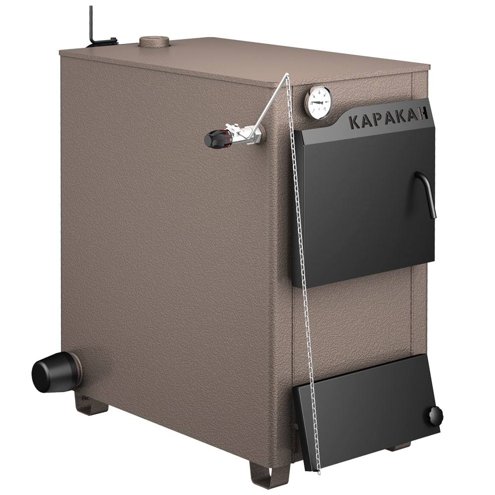 Котлы отопительные твердотопливные с водяным контуром КАРАКАН предназначены для обогрева жилых и производственных помещений площадью до 300 м². Встраиваются в любую систему отопления с давлением до 3 атм, с любыми расширительными баками.Присоединительные патрубки расположены слева и справа. Теплоноситель – вода либо антифриз для систем отопления.