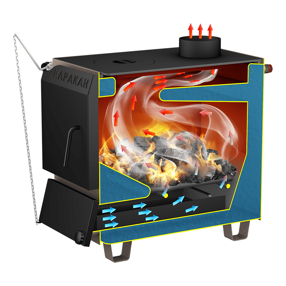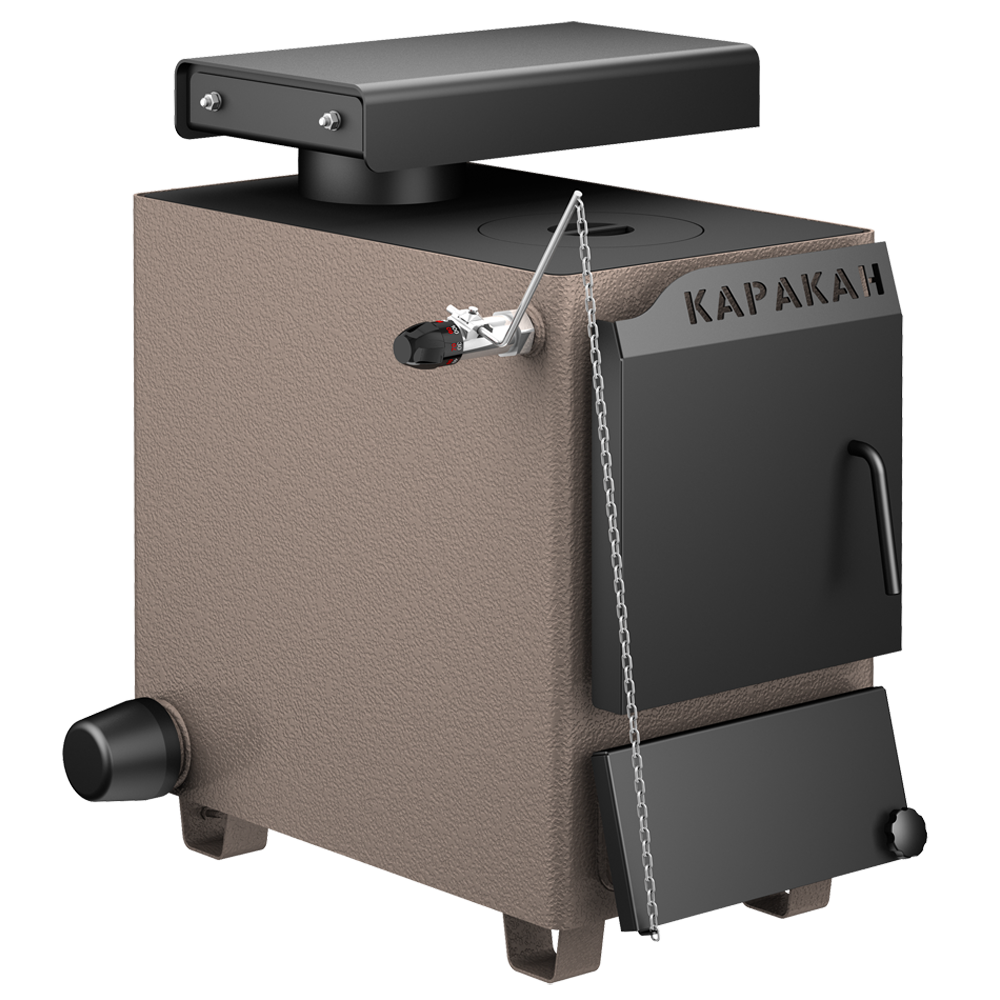 Котлы отопительные твердотопливные с водяным контуром КАРАКАН предназначены для обогрева жилых и производственных помещений площадью до 300 м². Встраиваются в любую систему отопления с давлением до 3 атм, с любыми расширительными баками.