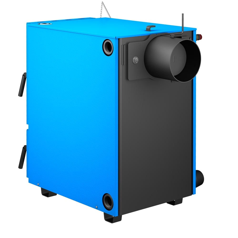 - водяная рубашка вкруг (проходя под зольной камерой, вода снимает тепло с горячей золы; нагрев теплоносителя начинается на уровне дна, усиливая циркуляцию и повышая мощность и КПД котла);