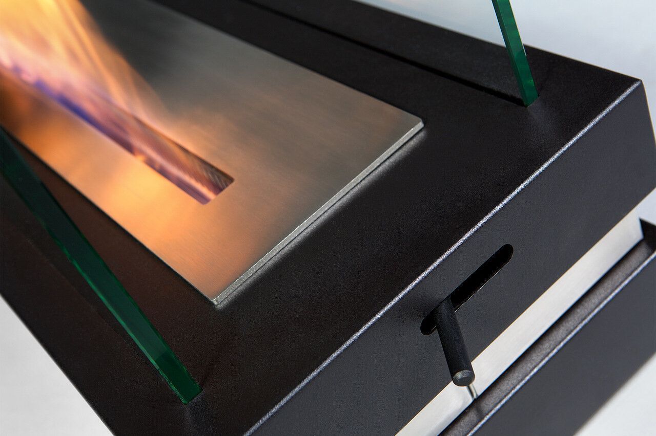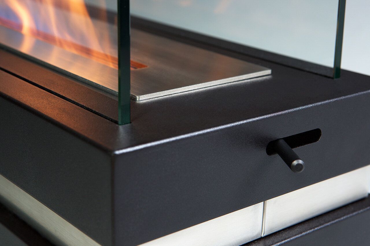 Биокамин FAME AVE. BLACK оснащён интегрированной системой механической регулировки пламени TM Silver Smith, которая путем перемещения специальной рукоятки встроенного запатентованного механизма, позволяет плавно регулировать высоту горящего пламени вплоть до полного прекращения горения.