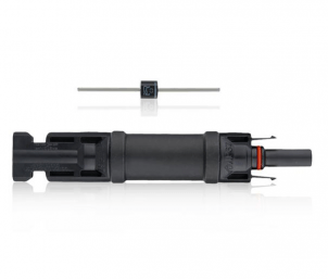 Диод mc4 выполнен в схожем с соединительным разъемом корпусе и устанавливается в систему легко, простым соединением с разъемами типа mc4.