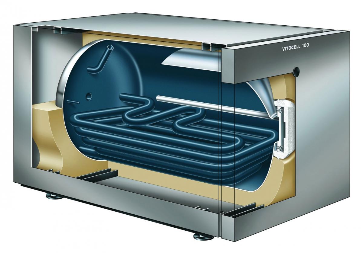 Решение для экономного приготовления горячей воды. Емкостный водонагреватель Vitocell 100-H в горизонтальном исполнении поставляется с водонаполнением от 130 до 200 литров.