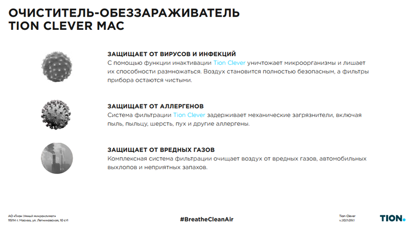 антибактериальная пропитка одного из фильтров (HEPA H13) инактивирует (уничтожает) болезнетворные микроорганизмы.