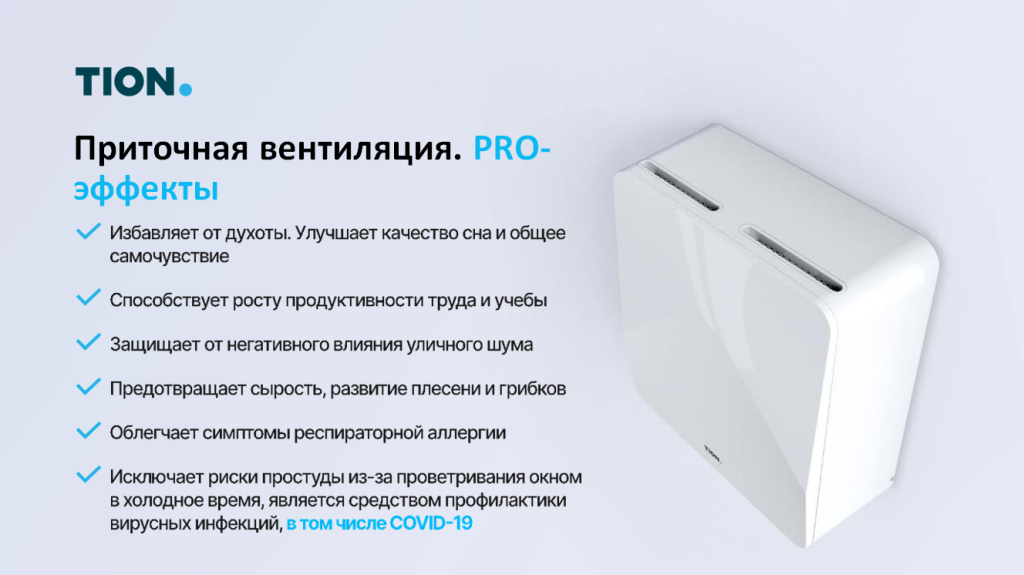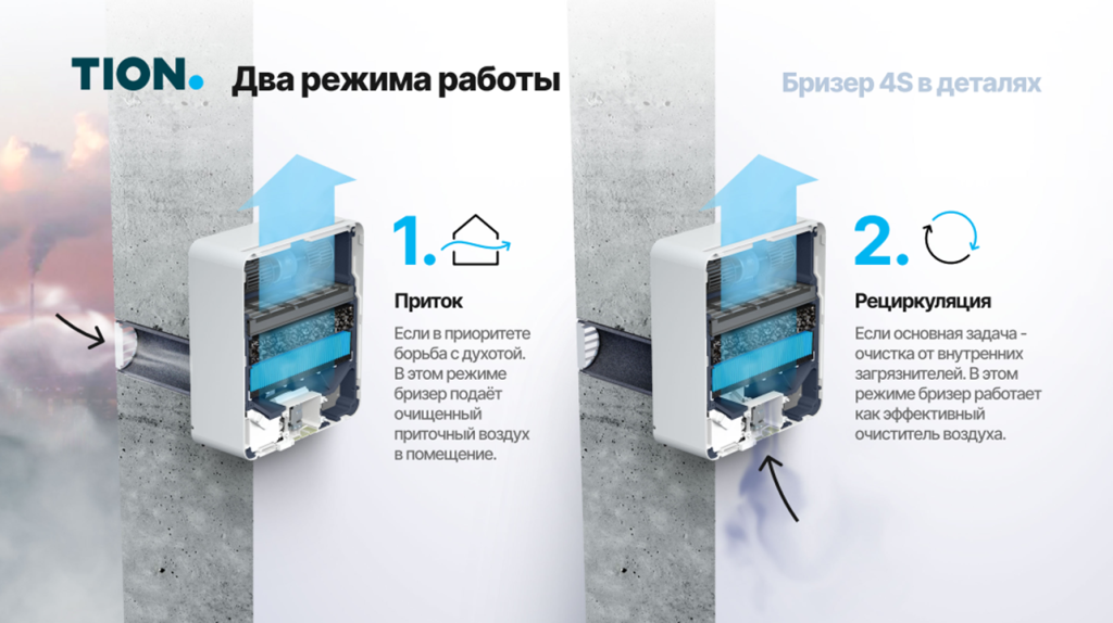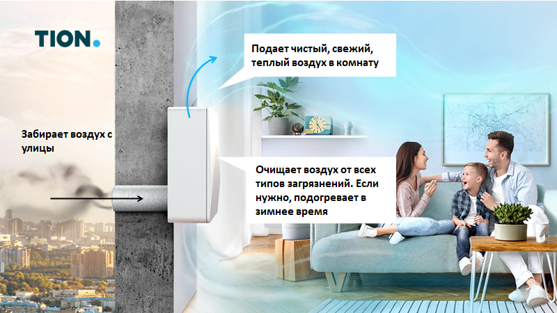 Компактная приточная вентиляция бризер Tion — это комплексное решение для безопасного проветривания и очистки приточного и домашнего воздуха